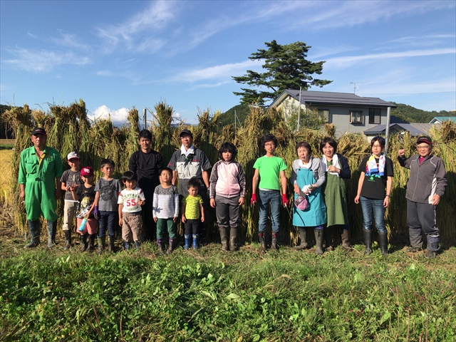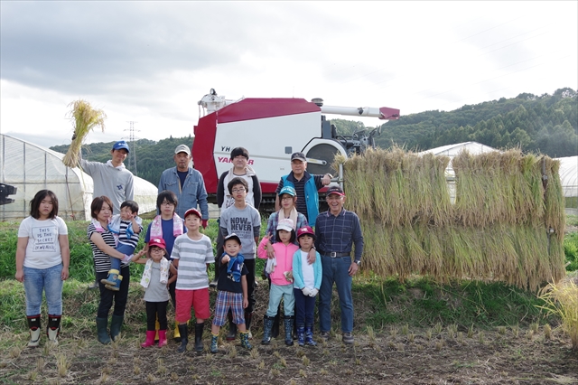 田んぼの楽交「もち米栽培体験会」稲刈り終了後の集合写真